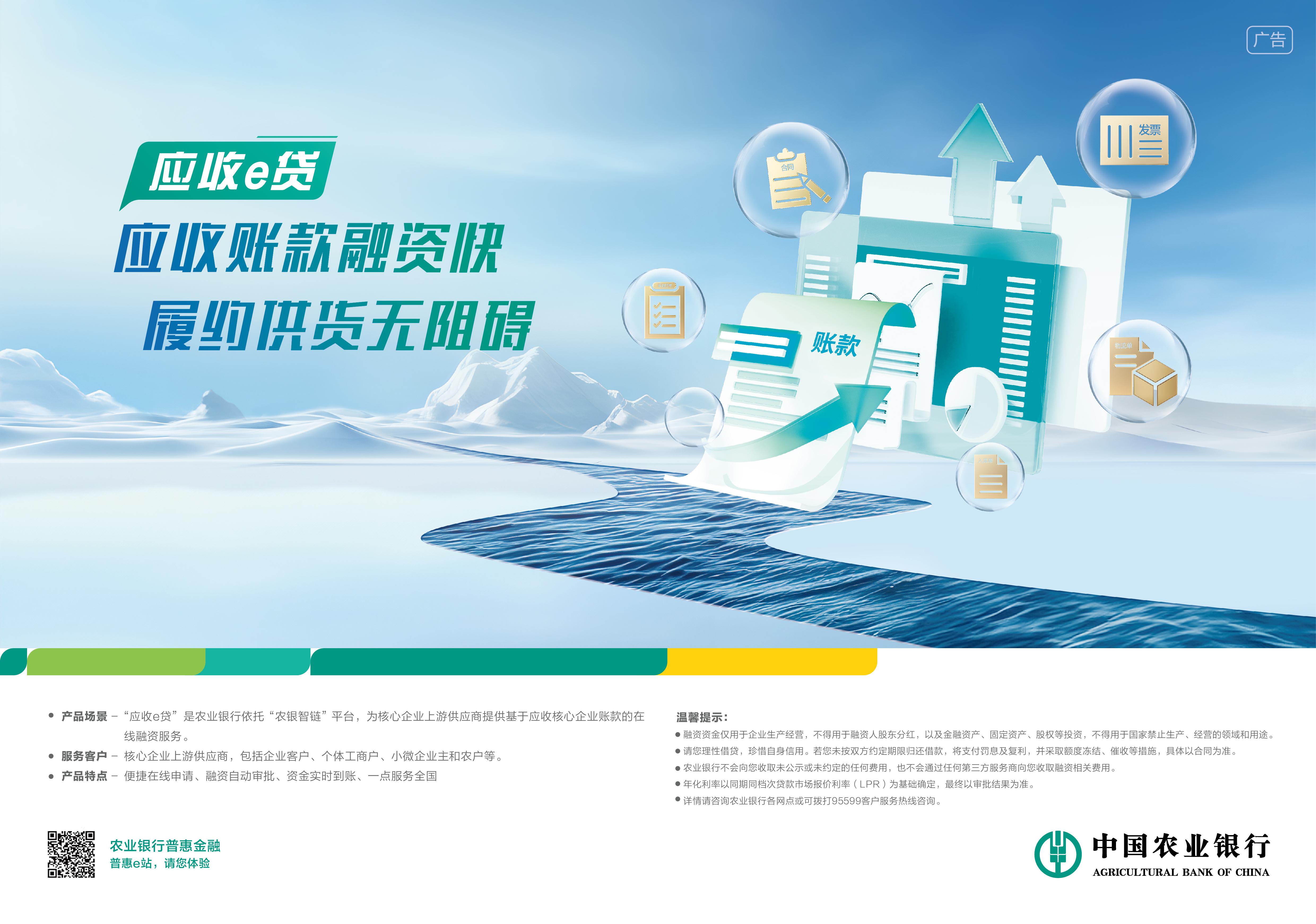 九融配资端 农业银行应收e贷:应收账款融资快 履约供货无阻碍
